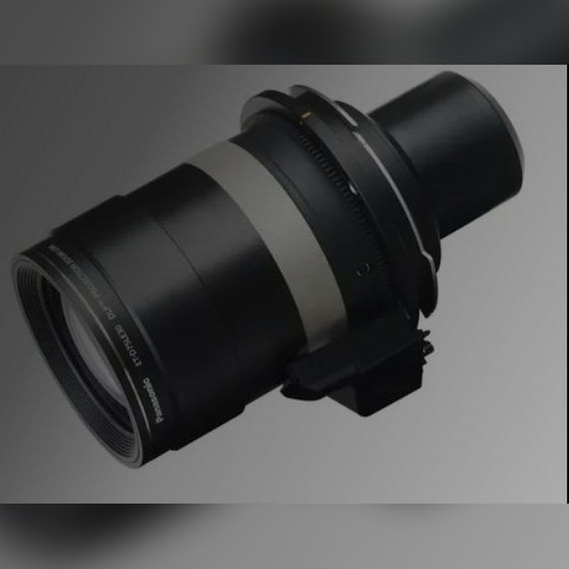 Das Objektiv ET-D75LE30 ist ein motorisiertes Zoom-Wechselobjektiv für professionelle Panasonic 3-Chip-DLP-Projektoren mit mittleren bis längeren Projektionsdistanzen. Der Brennweitenbereich von 50,5 bis 97,9 mm und das variable Projektionsverhältnis erlauben die Anpassung der Bildgröße ohne manuelles Wechseln von Objektiven. Durch den festen F-Wert von 2,5 wird eine konstante Lichtdurchlässigkeit sichergestellt, was in Umgebungen mit variierenden Lichtverhältnissen für stabile Projektionsergebnisse sorgt. Das robuste, mehrere Kilogramm schwere Objektiv ist für den häufigen Einsatz im Verleih konstruiert und eignet sich für Live-Events, Konferenzen oder Installationen, bei denen die Distanz zwischen Projektor und Leinwand variiert und schnelle Anpassungen notwendig sind. Die motorisierte Zoomfunktion erleichtert die Feinjustage bei schwer zugänglichen Installationsorten und trägt zur Flexibilität in professionellen AV-Setups bei.